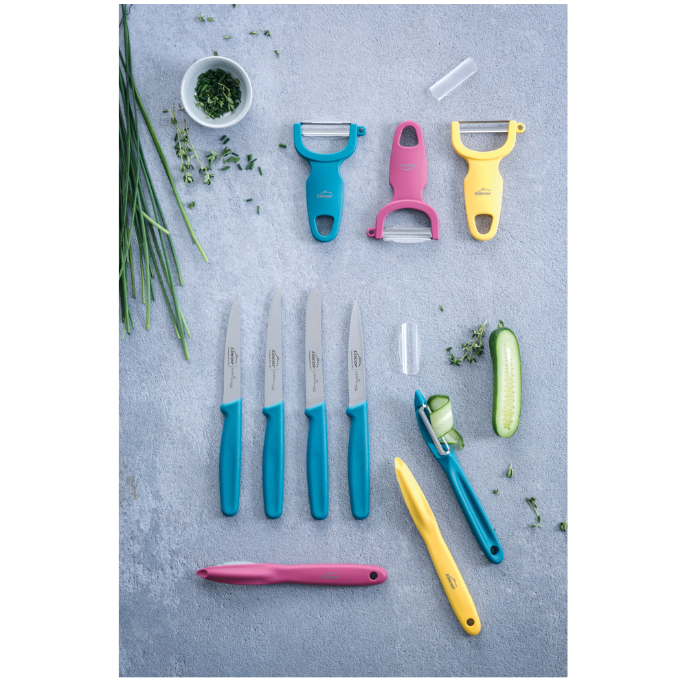 Beitt blað sem skrælir hratt og jafnt og fylgir lögun hráefnis. Hentar vel fyrir kartöflur, gulrætur, epli og annað grænmeti og ávexti.